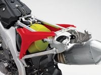 - Aluminum Renthal handlebar (971 bend) is rubber mounted to help reduce rider fatigue and improve comfort.- Handlebar holders provide two different mounting positions to match rider preference.- New handlebar grips add to rider comfort.- Dunlop 742FA front and a new 120/80-19 D756 rear tire maximize traction.- Washable, two-stage foam air filter for optimal engine protection and easy maintenance.- Repackable silencer for maximum performance and minimal noise.- Comfortable, durable controls and high-quality fasteners.- Stainless steel clutch cable for long life.- Honda RacingTM -inspired colors and graphics.- When you buy a new Honda Powersports Product, you may be eligible to receive a complimentary one year membership in the Honda Riders Club of America, which includes an exclusive Members-only magazine, rider training benefits, access to the Members-only Clubhouse Web site and much more. Some limitations apply. For more information on the HRCA, log on to