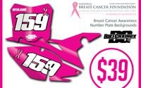 Overland Park, KS (October 7, 2015) - BikeGraphix, creator of the $29 number plate background, is offering a "Breast Cancer Awareness" set of number plate backgrounds for the month of October. A portion of the proceeds will go to The National Breast Cancer Foundation. The "Awareness" series has a pink background with a white number with an optional black outline. The front and two side plates also have a "Breast Cancer Awareness Ribbon" on each plate. As always, you can add your name or company to the front plate.
