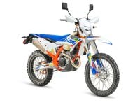 While the 2025 iteration of KTM’s 500 EXC-F Six Days was outfitted with orange bodywork all around, the 2026 model wears white and blue.KTM
