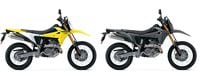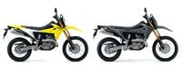 The 2026 Suzuki DR-Z4S is identical to the 2025 model. Its graphics remain the same, and two color options remain Champion Yellow No. 2/Solid Special White No. 2 (left) and Solid Iron Gray (right).Suzuki