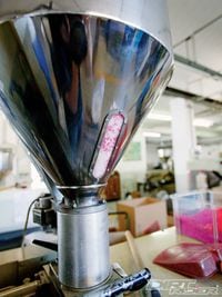 Here a pink grip is being produced for a child's bicycle. You can see the mix is a combination of pink and white to achieve the perfect matching tone to the color of the bike.