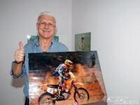 Luigi took this photo of Dirt Rider's own Jimmy Lewis down from the wall to pose for this photo. Lewis used to race rally for Progrip. The funny thing is, I didn't see Luigi put the photo back up on the wall...