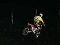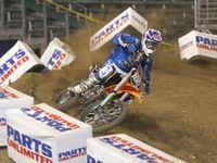 The next round saw Windham matched up with Heath Voss. Windham took the holeshot, but Voss stayed right on him. Voss looked extremely fast and motivated, but Windham had an ace up his sleeve in the form of a triple before the finish only he and Pastrana were doing. It made all the difference, and Windham held on for the win.Josh Grant and Danny Smith were up next. Smith got the holeshot, with Grant passing him two straights later in a rhythm section and holding on until the end.The final two-man elimination race came down, just like the night before, to Windham and Grant. Windham took the holeshot and the two raced side by side off the ramp. The two riders had different rhythms through the two big table tops, and Windham gained a tiny bit of breathing room. Grant was squeezing that 250F for all it was worth, but Windham slowly crept away from him and took the elimination round win.The freestylers came back, and where Pastrana had participated before, it was announced he had jammed his hand in his last race and would be done for the evening.Then the final race of the night and of the weekend came up. The race would be scored together with the final race of Friday night to crown an overall winner. Kyle Lewis grabbed the holeshot just inches ahead of Windham. Windham used his position to slip immediately into the lead. He was followed by Lewis, Sorby, Vuillemin, and Dement.Josh Grant was mid pack, but started making things happen fast. He passed his way from eighth to sixth by diving under two riders in one corner. Grant was on the move, and looked determined to catch Windham. Meanwhile, Vuillemin made his way into second by the third lap, and seemed to be matching Windham's pace.Grant worked his way up to third, but his charge was done. Windham and Vuillemin both stayed about three seconds apart as they slowly put distance on Grant. Vuillemin would get the last laugh in his battles with Grant by holding second place until the finish.Windham took the moto and the weekend. Grant took second overall with 2-3 scores for the weekend, and David Vuillemin got third overall with 4-2 scores. Rounding out the top five were Heath Voss (5-4) and Jason Thomas (7-5).The weekend was an exciting one. Jeremy McGrath's dream was realized in the Home Depot center, and it really came to life during some of the tense elimination races. Jeremy didn't get to see much of it, so maybe he'll have to throw the whole party again next year.