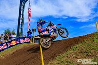 In moto one Justin got of to a good start and was behind Ken Roczen after the first lap, running in second place. Justin was able to hold off the charge from Eli Tomac for the first twelve minutes of the moto.Photo by Rob Koy