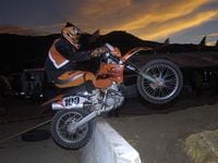 The Thumper Racing 570 provided the best combination of off-road characteristics, and that's why it's my number one. Its powerplant is solid from off-idle to full throttle, its suspension was rave-worthy and it failed to disappoint in any ergonomic area. It was smooth and sweet. I could work this bike up the biggest, nastiest rock gardens or cruise downhill single-track with ease. It started easily, never overheated and was a constant performer through everything I threw at it. To cap it off, all of this off-road goodness came wrapped in what is undeniably the manliest bike of the event.2nd Husaberg FE550