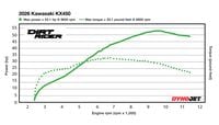 The current-generation (2024–2026) Kawasaki KX450 is deceivingly fast. The 2026 model’s fuel-injected liquid-cooled DOHC four-stroke 449cc single-cylinder engine sends 53.1 hp and 33.1 lb.-ft. of torque to the rear wheel, as measured on our in-house dyno. Those figures are higher than the 2023 model by 1.2 hp and 0.5 lb.-ft. of torque at peak, but the KX450 mill of today isn’t as highly praised as the 2019–2023 model in the powerplant department due to its character.