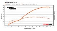 Success in the 250cc four-stroke motocross bike division has a lot to do with a powerful engine, and that’s one reason why KTM’s 250 SX-F is a high achiever year after year. The 2026 model’s fuel-injected liquid-cooled DOHC four-stroke 250cc single-cylinder engine produces class-leading figures of 41.8 hp and 19.7 lb.-ft. of torque, as measured by our in-house Dynojet 250i rear-wheel dynamometer. For comparison, that’s 1.0 hp more than Triumph’s TF 250-X and 0.2 lb.-ft. of torque more than GasGas’ MC 250F, which are runner-ups in peak horsepower and torque, respectively.